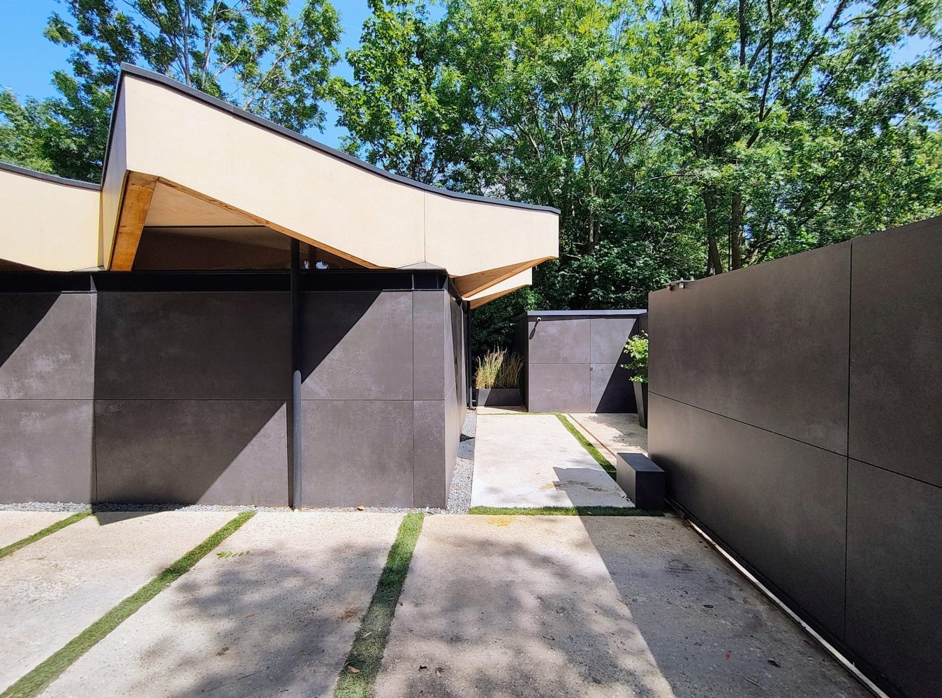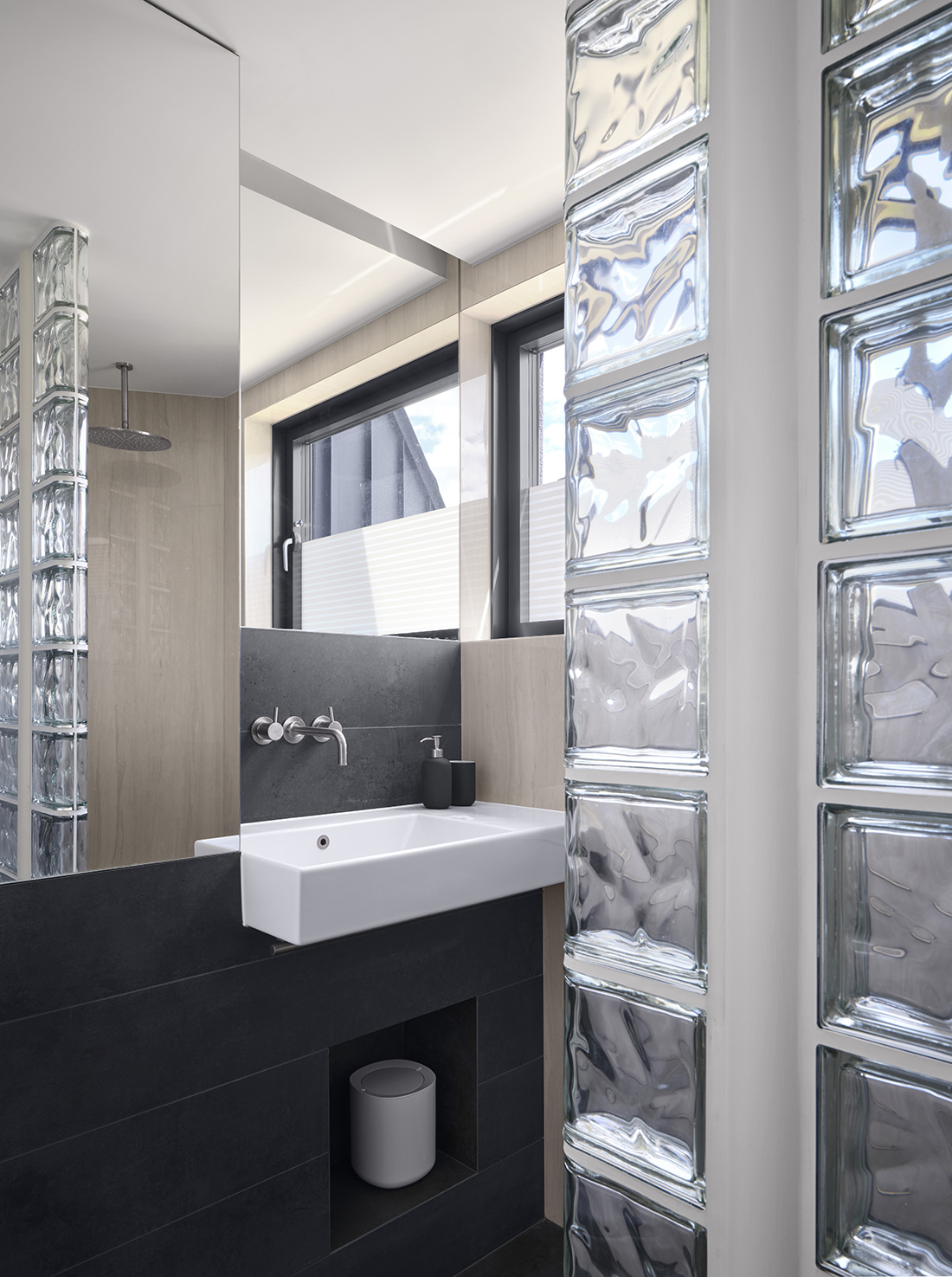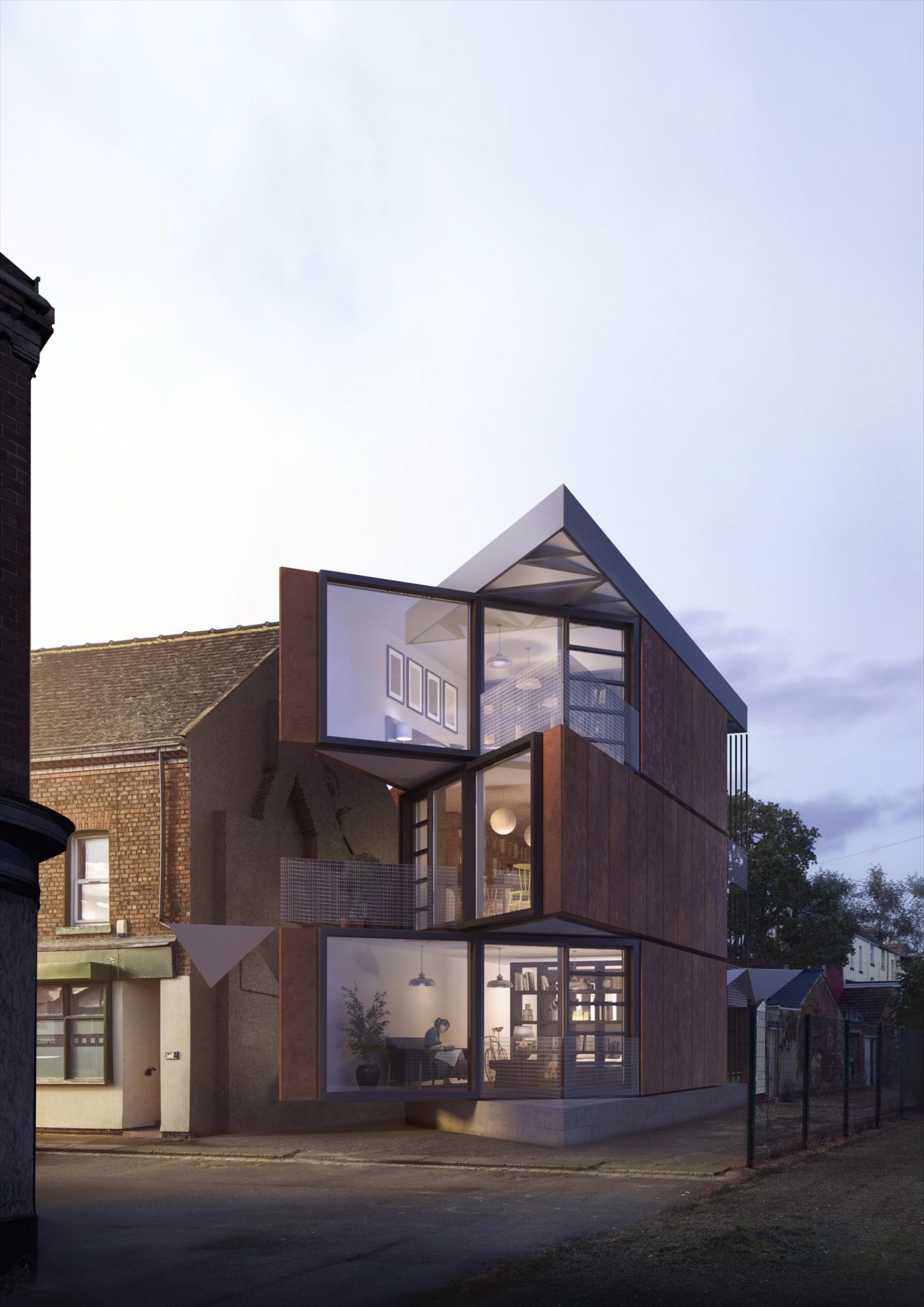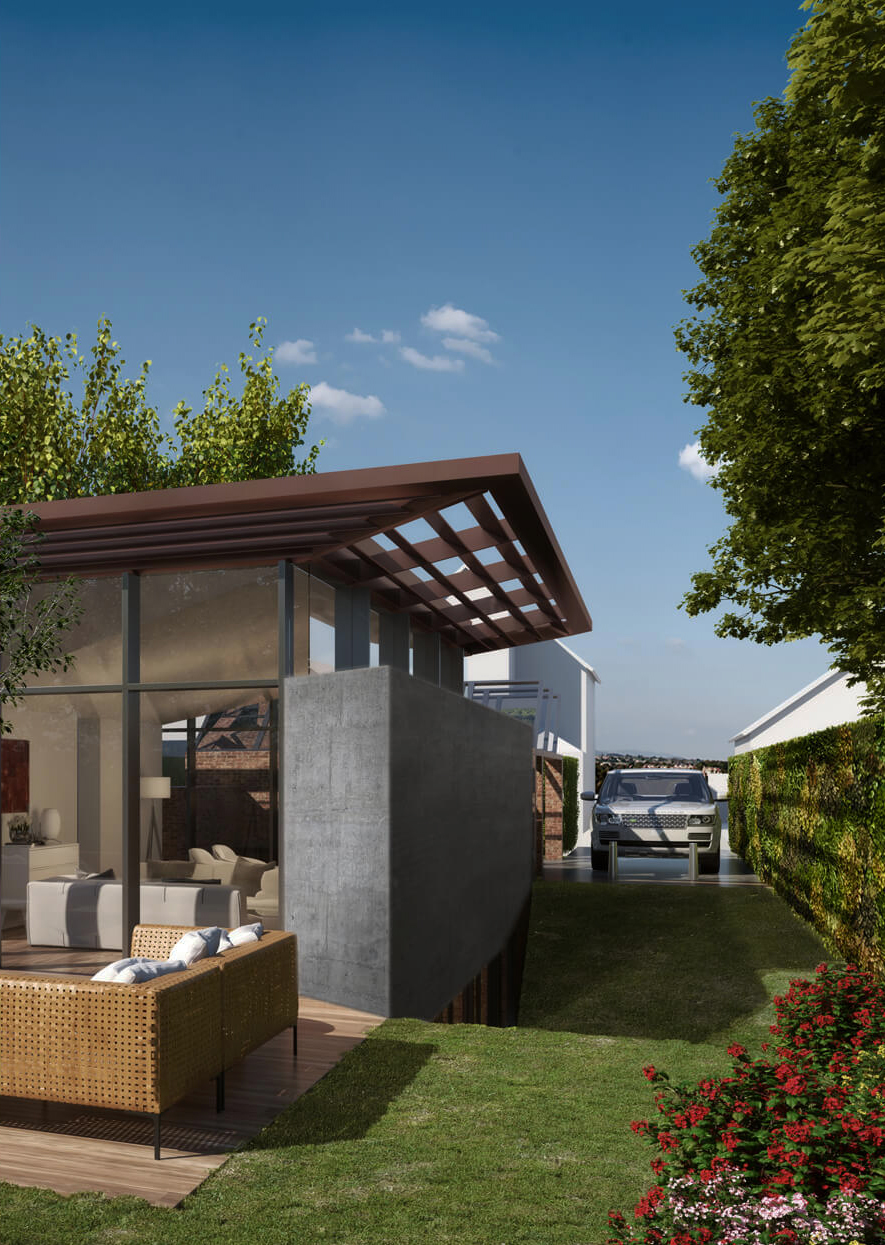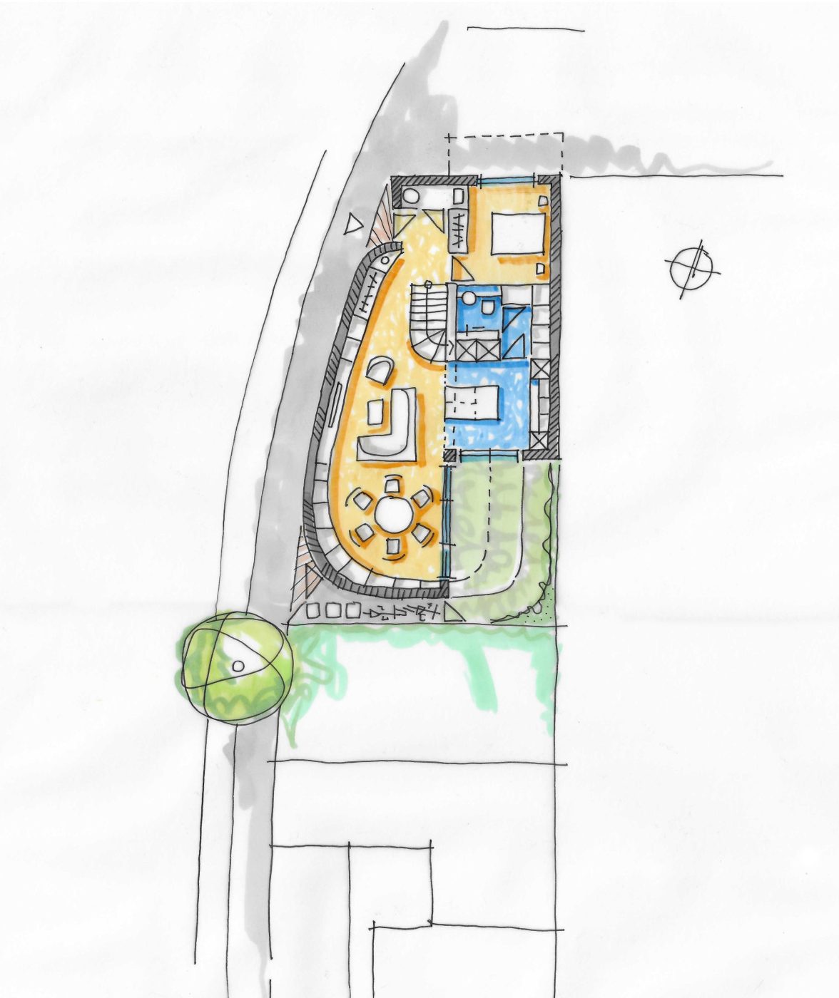 Really, really very clever. A really challenging space to make use of for even one home.. but two homes?… And not just any old houses – ones with functional, beautiful and striking schemes